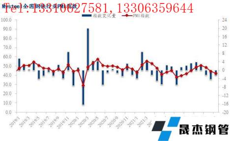 2022年5月份全國鋼鐵行業PMI為42.0%,環比回落2.3個百分點,連續三個月低於榮枯線。分指標來看,本月新訂單、新出口訂單、積壓訂單、出廠價格、原料采購價指數均大幅回落,僅產出、原材料庫存指數小幅回升,但仍處於榮枯線下方,顯示了5月份國內鋼鐵行業呈現供需兩弱的低迷態勢運行。具體來看,5月份國內疫情仍呈多點散發態勢,繼續拖累終端需求釋放,同時宏觀經濟數據顯示投資消費信心不足、國內經濟麵臨較大下行壓力,導致市場悲觀情緒蔓延,國內宅男在线小视频無縫鋼管價格持續下行,無縫宅男在线小视频鋼管廠家生產盈利快速收窄,尤其是短流程無縫宅男在线小视频鋼管廠家麵臨全線虧損,無縫宅男在线小视频鋼管廠家供給釋放受到抑製。麵對即將到來的6月份,國內鋼價能否止跌企穩,下麵筆者從PMI各項指數進行分析解讀。