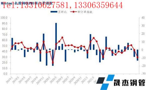 5月份,全國鋼鐵行業新訂單指數29.6,月環比下降13.3個百分點,再次處於榮枯線之下。