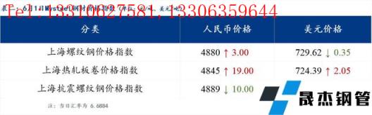 分地區方麵,上海螺紋鋼價格指數4880,上漲3.0;上海熱軋板卷價格指數4845,上漲19.0。(單位:元/噸)
