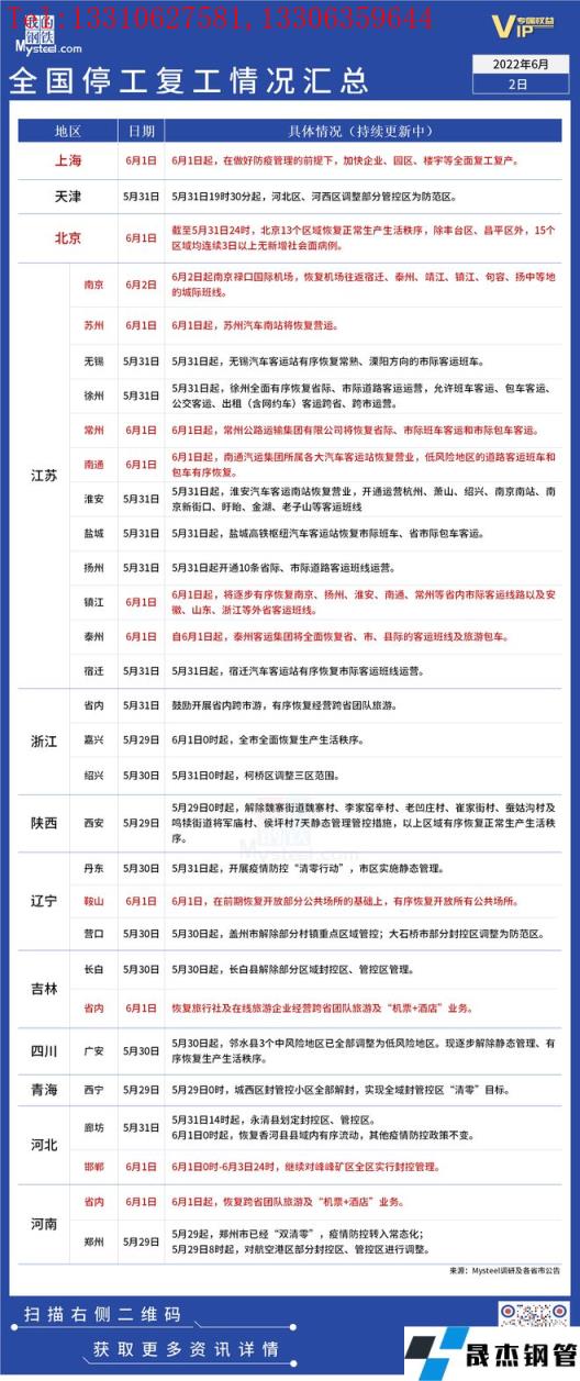 疫情影響丨全國停工複工情況匯總(6月1日)