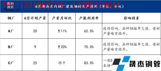 表二:6月省內無縫宅男在线小视频鋼管廠家生產情況