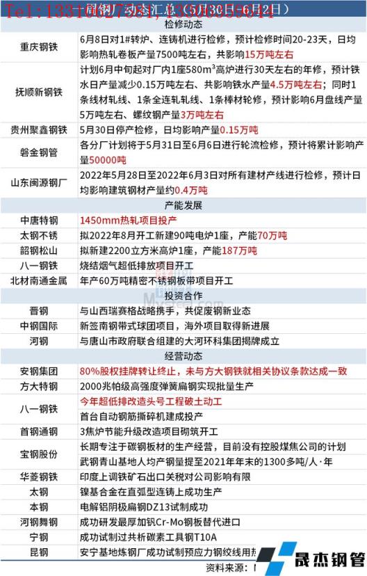 據不完全統計,本周(5月30日-6月2日)有5家無縫宅男在线小视频鋼管廠家發布檢修計劃,具體如下: