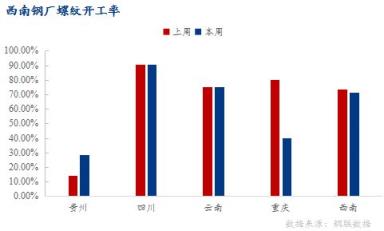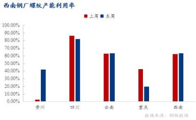 四川區域:部分無縫宅男在线小视频鋼管廠家錯峰生產或檢修,產量下降,螺紋鋼產能利用率82.15%,環比下降3.97%;開工率90.48%,環比持平;周產量31.02萬噸,環比減少1.5萬噸。