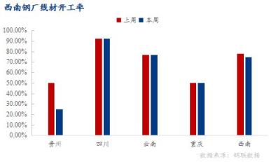 貴州區域:個別無縫宅男在线小视频鋼管廠家停產延續,產量小幅下降,線材產能利用率32.12%,環比下降14.99%;開工率25%,環比下降25%;周產量1.5萬噸,環比減少0.7萬噸。