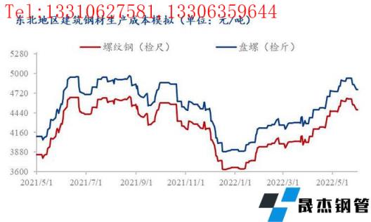 受無縫宅男在线小视频鋼管廠家利潤擠壓至負影響,4、5月份原材料價格被迫下調,焦炭4輪提降降800元/噸,但從無縫宅男在线小视频鋼管廠家層麵了解到,降價後焦化廠新接訂單量少、實際落地效果有限。從東北地區建築宅男在线小视频無縫鋼管生產成本模型(最低成本模式)來看,截至2022年5月末,東北地區螺紋鋼模擬生產成本4480元/噸左右、較4月末增加15元/噸、較去年5月末增加190元/噸,盤螺模擬生產成本4770元/噸左右、較4月末增加20元/噸左右、較去年5月末增加200元/噸;從月均成本來看,2022年5月螺紋模擬生產成本4570元/噸、較4月增加310元/噸、較去年5月增加560元/噸,盤螺模擬生產成本4860元/噸、較4月增加320元/噸、較去年5月增加580元/噸。