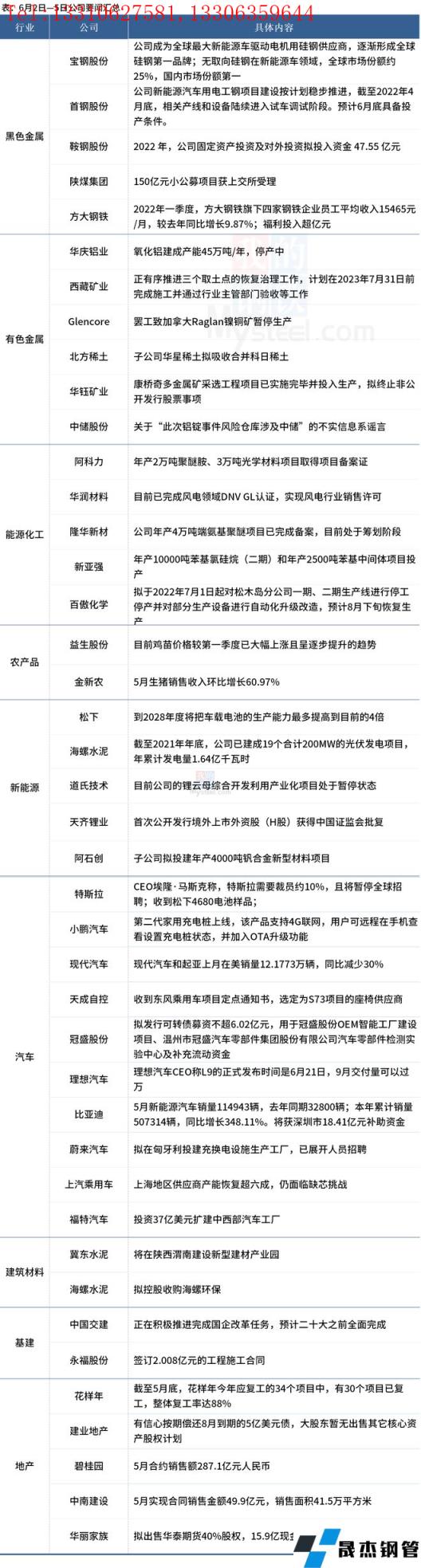 寶鋼股份成為全球最大新能源車驅動電機用矽鋼供應商,逐漸形成全球矽鋼第一品牌;北方稀土子公司華星稀土擬吸收合並科日稀土;海螺水泥擬控股收購海螺環保;比亞迪汽車將獲深圳市18.41億元補助資金;福特汽車投資37億美元擴建中西部汽車工廠。