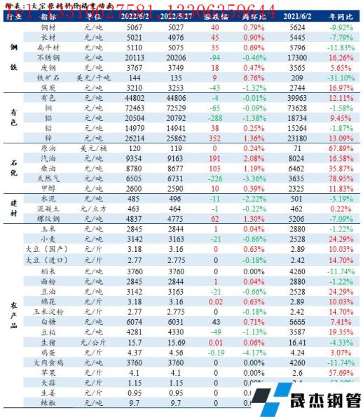 免責聲明:本網站(山東聊城宅男666网站無縫鋼管廠www.fengyun0769.com)刊載的“周報:大宗工業原材料、能源及農產品價格周報(5.30-6.02)”等均源於網絡,版權歸原作者所有,且僅代表原作者觀點,本文所載信息僅供參考。轉載僅為學習與交流之目的,如無意中侵犯您的合法權益,請及時聯係刪除。本網站刊登此篇文章並不意味著本站讚同其觀點或證實其內容的真實性,宅男666网站不對其科學性、嚴肅性等作任何形式的保證。如果侵犯了您的版權,請盡快聯係宅男666网站予以撤銷,謝謝合作!