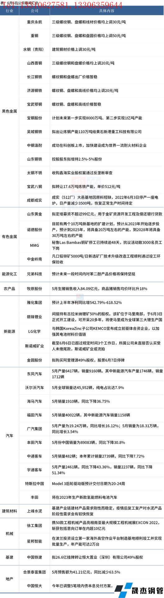 6月7日,匯總部分大宗商品相關企業要聞。
