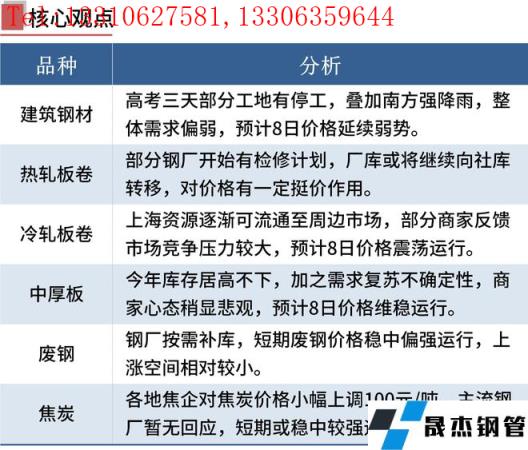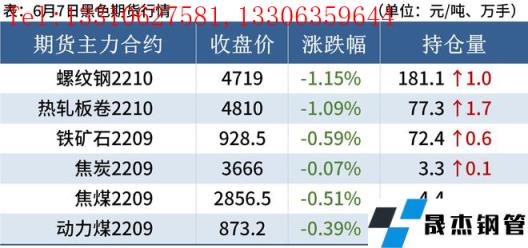 冷軋板卷:6月7日,全國24個主要城市1.0mm冷卷均價5442元/噸,較上個交易日下跌5元/噸。隨著昨日黑色係期貨夜盤偏弱運行,今日早間現貨市場報價以穩為主,個別市場小幅探漲,午後期貨盤麵震蕩下行,商家為促成交,價格稍有暗降,以降價出貨為主,今日整體成交表現一般。心態方麵,據悉,上海現已解封,資源逐漸可流通至周邊市場,部分商家反饋市場競爭壓力較大,加上進入宅男在线小视频無縫鋼管需求淡季,市場情緒並不樂觀,心態謹慎偏悲觀。綜合來看,故預計8日國內冷軋板卷價格或將震蕩運行。