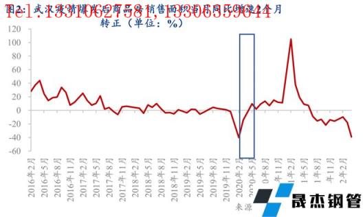 (1)在武漢疫情爆發後,新開工麵積同比和商品房銷售麵積同比在當年2月降幅最大,在當年5月隨即轉負為正(參見圖1和圖2)。照此推算,在不考慮房地產行業內生性下滑的情況下,僅考慮疫情因素,至少需要2-3個月時間,房地產銷售和新開工等主要指標同比增速才能轉正。