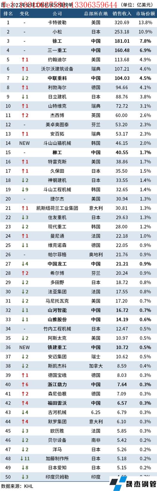 近日,世界領先的工程信息提供商英國KHL集團發布了2022全球工程機械製造商50強排行榜。詳細梳理了該榜單內容。