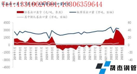 而在板帶箔出口方麵,宅男666网站從下圖數據可以看到,在鋁卷出口利潤為負的時候,板帶箔仍維持較高水平的出口量。