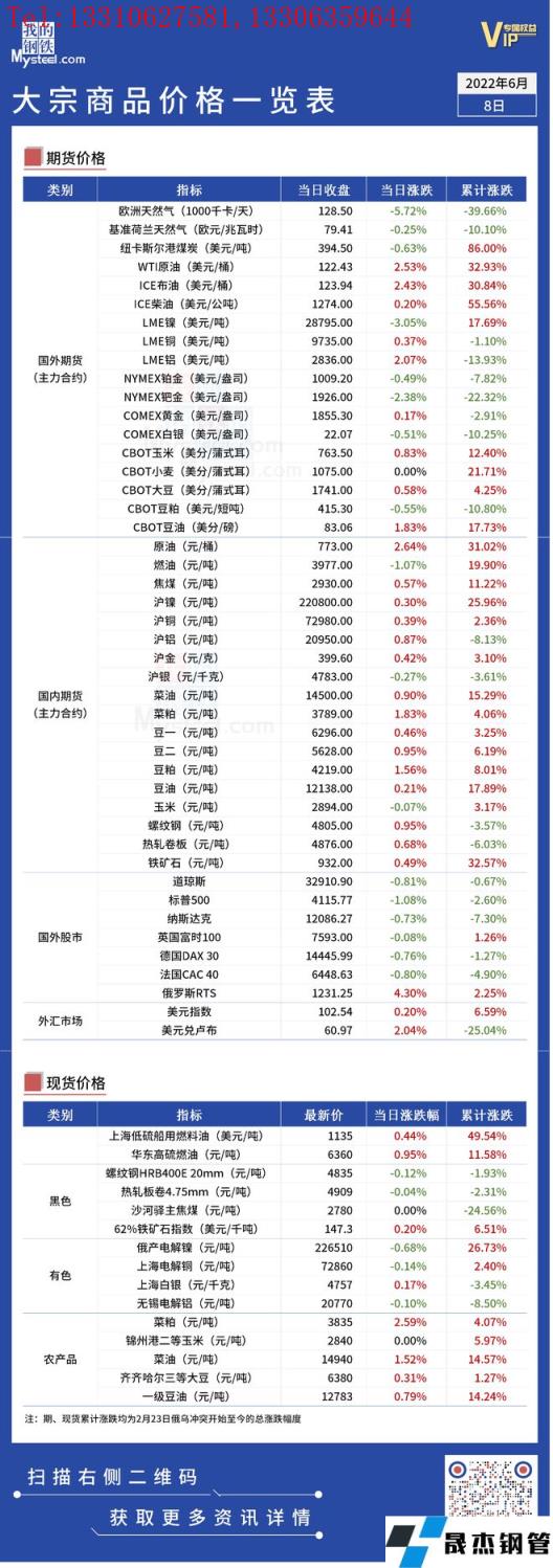 免責聲明:本網站(山東聊城宅男666网站無縫鋼管廠www.fengyun0769.com)刊載的“俄烏局勢丨大宗商品價格一覽表(6月8日)”等均源於網絡,版權歸原作者所有,且僅代表原作者觀點,本文所載信息僅供參考。轉載僅為學習與交流之目的,如無意中侵犯您的合法權益,請及時聯係刪除。本網站刊登此篇文章並不意味著本站讚同其觀點或證實其內容的真實性,宅男666网站不對其科學性、嚴肅性等作任何形式的保證。如果侵犯了您的版權,請盡快聯係宅男666网站予以撤銷,謝謝合作!