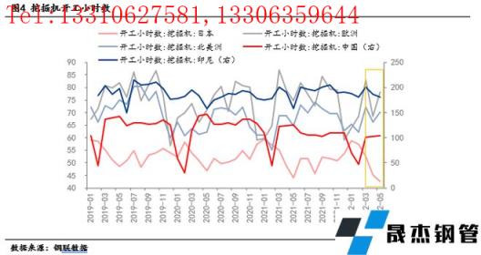 4月挖掘機出口銷量8445台,同比增長64%,增幅較去年收窄,目前出口量占到挖掘機總銷量的40.95%,較去年同期增加22.03個百分點,出口對挖掘機銷量貢獻明顯增加。但分析來看,未來挖掘機出口銷量增長空間收窄,主要原因包括以下幾個方麵:1、中國作為製造業大國,在去年疫情修複後為全球工業產品供應發揮了重要作用,目前全球製造業供應鏈逐漸恢複正常,對中國進口需求下降。2、海外市場需求轉弱,從小鬆挖掘機公布的各國挖掘機開工小時數來看,5月日本、印尼開工小時數均呈現環比下滑趨勢,北半球開始進入施工淡季,對挖掘機需求減弱。
