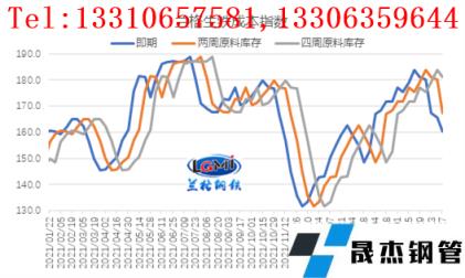 從月度均值表現來看,據研究中心監測數據顯示,5月份,即期原料成本指數均值為168.4,較4月份下降6.1%;兩周原料庫存成本指數為178.0,較4月份上升1.8%;四周原料庫存成本指數為179.8,較4月份上升5.0%。同期,綜合無縫鋼管 宅男在线小视频鋼管價格指數震蕩下行,月均值為5208元/噸,較上月下降3.6%;5月份即期成本降幅大於成品材價格跌幅,因而即期鋼企盈利空間有所改善;而原料庫存周期越長成本上升幅度越明顯,因此原料庫存周期越長,盈利收縮也越嚴重。
