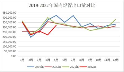 1-5月國內焊接無縫鋼管出口量同比下降38.03%
