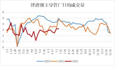 從焊鍍管品種來看,截至6月30日,上半年在統計11家管廠日均出貨量2.69萬噸,同比去年同期下降26.90%,同比2020年同期下降30.49%,其中6月環比上月增長1.32%,上半年高預期、高供應持續發酵,但需求受疫情等影響,持續後延,管廠日均出貨峰值4.2萬,為農曆春節前的冬儲階段。上半年在統計國內各區域貿易商日均出貨量峰值在3月初,均值下滑24.63%,其中6月處於上半年平均日出貨量中線上方水平,較均值增長9.19%,較年內峰值下滑17%。7月價格跌勢超出預期,終端實際需求釋放仍將有限,預計7、8月份仍是一個高庫低需的景象;同時,宅男在线小视频鋼管產業鏈虧損程度亦超預期,關注庫存的下降斜率變化。