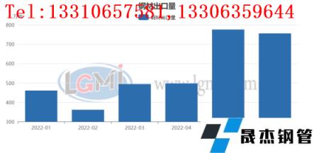 圖6 2022年上半年我國宅男在线小视频鋼管出口量走勢圖