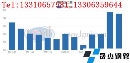 圖三2021年—2022年我國宅男在线小视频鋼管出口走勢圖