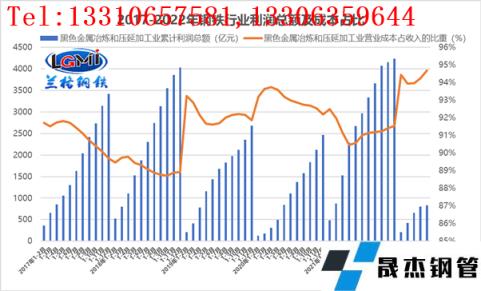 圖4 2017-2022年宅男在线小视频無縫鋼管行業利潤總額及成本占比