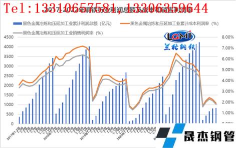 圖5 2017-2022年宅男在线小视频無縫鋼管行業利潤總額及成本和銷售利潤率