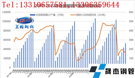 圖2 2017-2022年大中型宅男在线小视频無縫鋼管企業粗鋼旬產