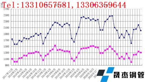 圖1 國內建築宅男在线小视频鋼管均價走勢圖