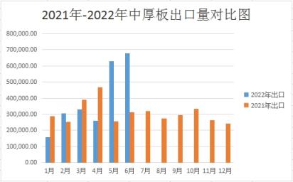 圖6 中厚板產品2021-2022年度進口量對比圖